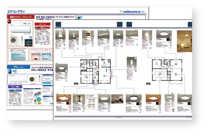 専門のプランナーがお客様のご希望をもとに、住まいの空間デザインや省エネ、環境に配慮して、照明、空調機器、セキュリティ、オール電化など、最適なトータルプランを提案します。お客様のご意見を反映しながら、ご満足いただけるコーディネートプランを実現しています。